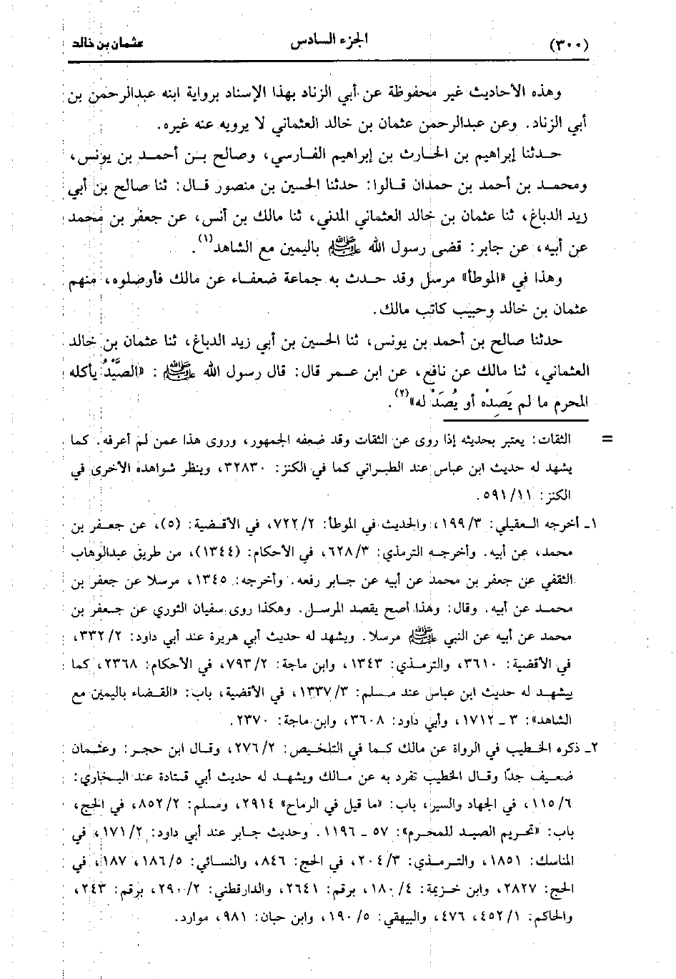 حَدَّثَنَا إِبْرَاهِيمُ بْنُ الْحَارِثِ بْنِ إِبْرَاهِيمَ الْفَارِسِيُّ وَصَالِحُ بْنُ أَحْمَدَ بْنِ يُونُس، وَمُحمد بْنُ أَحْمَدَ بْنِ حَمْدَانَ قَالُوا، حَدَّثَنا الْحُسَيْنُ بْنُ مَنْصُورٍ، قَال: حَدَّثَنا صَالِحُ بْنُ أَبِي زَيْدٍ الدَّبَّاغُ، حَدَّثَنا عُثْمَانُ بْنُ خَالِدٍ الْعُثْمَانِيُّ الْمَدَنِيُّ، حَدَّثَنا مَالِكُ بْنُ أَنَسٍ عَنْ جَعْفَرِ بْنِ مُحَمد، عَنْ أَبِيهِ عَنْ جَابِرٍ قَضَى رَسُولُ اللَّهِ صَلَّى اللَّهُ عَلَيْهِ وَسَلَّمَ بِالْيَمَينِ مَعَ الشَّاهِدِ.