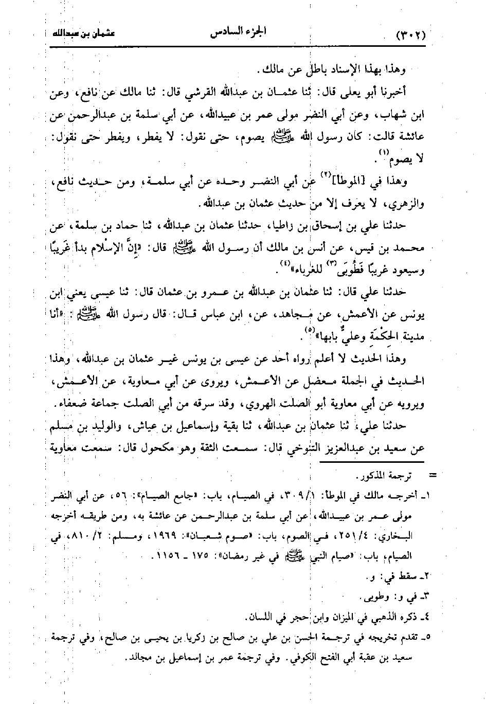 وَهَذَا فِي الْمُوَطَّأِ، عَن أَبِي النَّضْرِ وَحْدَهُ، عَن أَبِي سَلَمَةَ وَمِنْ حَدِيثِ نَافِعٍ وَالزُّهْرِيِّ لا يُعْرَفُ إلاَّ مِنْ حَدِيثِ عُثْمَانَ بْنُ عَبد اللَّهِ.
