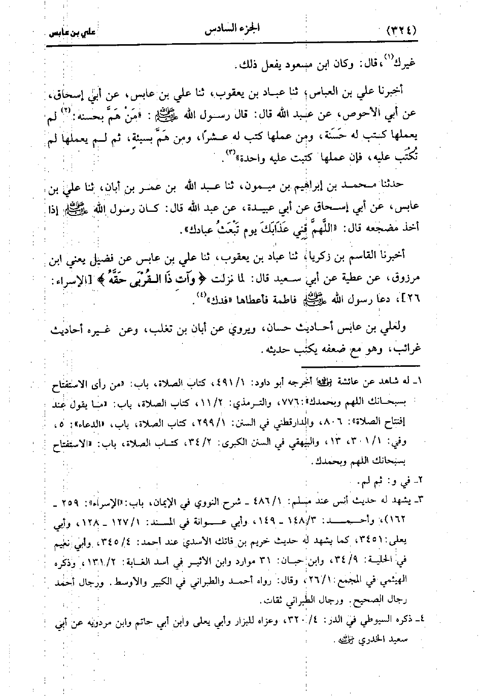 حَدَّثَنَا عَلِيُّ بْنُ الْعَبَّاسِ، حَدَّثَنا عَبَّادُ بْنُ يَعْقُوبَ، حَدَّثَنا عَلِيُّ بْنُ عَابِسٍ، عَن أَبِي إِسْحَاق، عَن أَبِي الأَحْوصِ عَنْ عَبد اللَّهِ، قَال: قَال رَسُولُ اللَّهِ صَلَّى اللَّهُ عَلَيْهِ وَسَلَّمَ مَنْ هَمَّ بِحَسَنَةٍ لَمْ يَعْمَلْهَا كَتَبَ لَهُ حَسَنَةً، ومَنْ عَمِلَهَا كَتَبَ لَهُ عَشْرًا، ومَنْ هَمَّ بِسَيِّئَةٍ ثُمَّ لَمْ يَعْمَلْهَا لَمْ تُكْتَبْ عَلَيْهِ فَإِنْ عَمِلَهَا كُتِبَتْ عَلَيْهِ وَاحِدَةً.