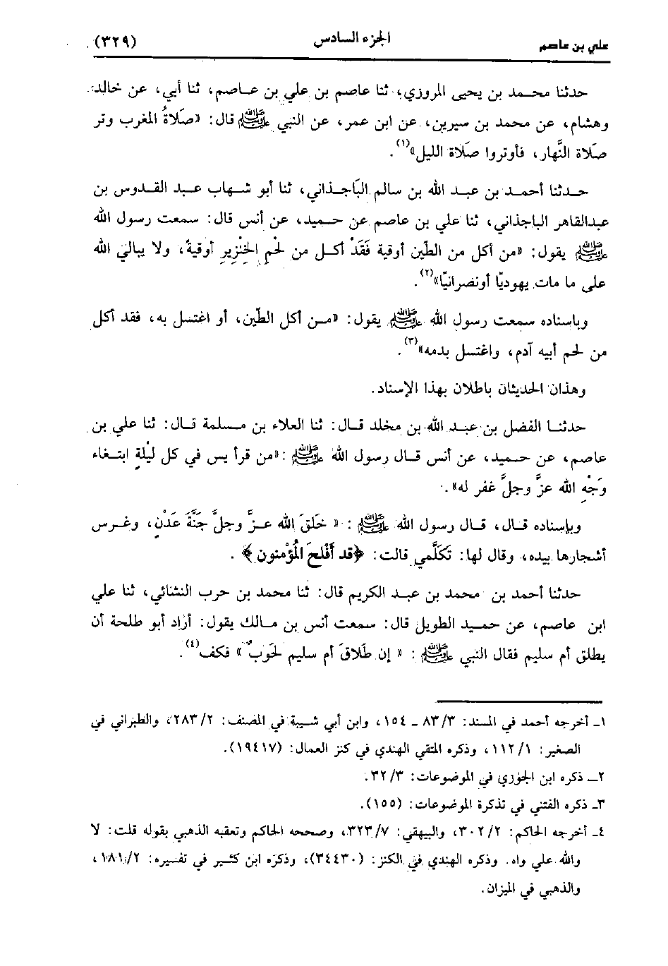 حَدَّثَنَا أَحْمَدُ بْنُ عَبد الله بن سالم الباجذاني، حَدَّثَنا أَبُو شِهَابٍ عَبد الْقُدُّوسِ بن عَبد القاهر الباجذاني، حَدَّثَنا علي بن عاصم عن حُمَيْدٍ، عَن أَنَس، قَالَ: سَمِعْتُ رَسُولِ اللَّهِ صَلَّى اللَّهُ عَلَيْهِ وَسَلَّمَ يقُول: مَن أَكَلَ مِنَ الطِّينِ أُوقِيَّةً فَقَدْ أَكَلَ مِنْ لَحْمِ الْخِنْزِيرِ أُوقِيَّةً، ولاَ يُبَالِي اللَّهُ عَلَى مَا مَاتَ يَهُودِيًّا أَوْ نَصْرَانِيًّا.