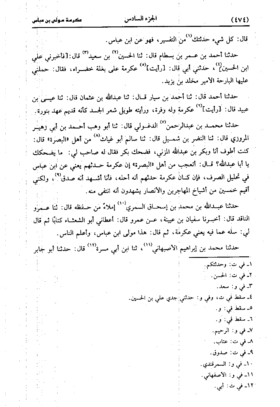 حَدَّثَنَا عَبد اللَّهِ بْنُ مُحَمد بْنِ إِسْحَاقَ السمري إملاء من حفظه، قَال: حَدَّثَنا عَمْرو الناقد، قَال: أَخْبَرنا سُفْيَان بْن عُيَينة عَنْ عَمْرو قَالَ أعطاني أَبُو الشعثاء كتابا ثُمَّ قَال لي سله عما فيه يعني عِكرمَة ثُمَّ قَالَ هَذَا مولى ابْن عباس وأعلم الناس.