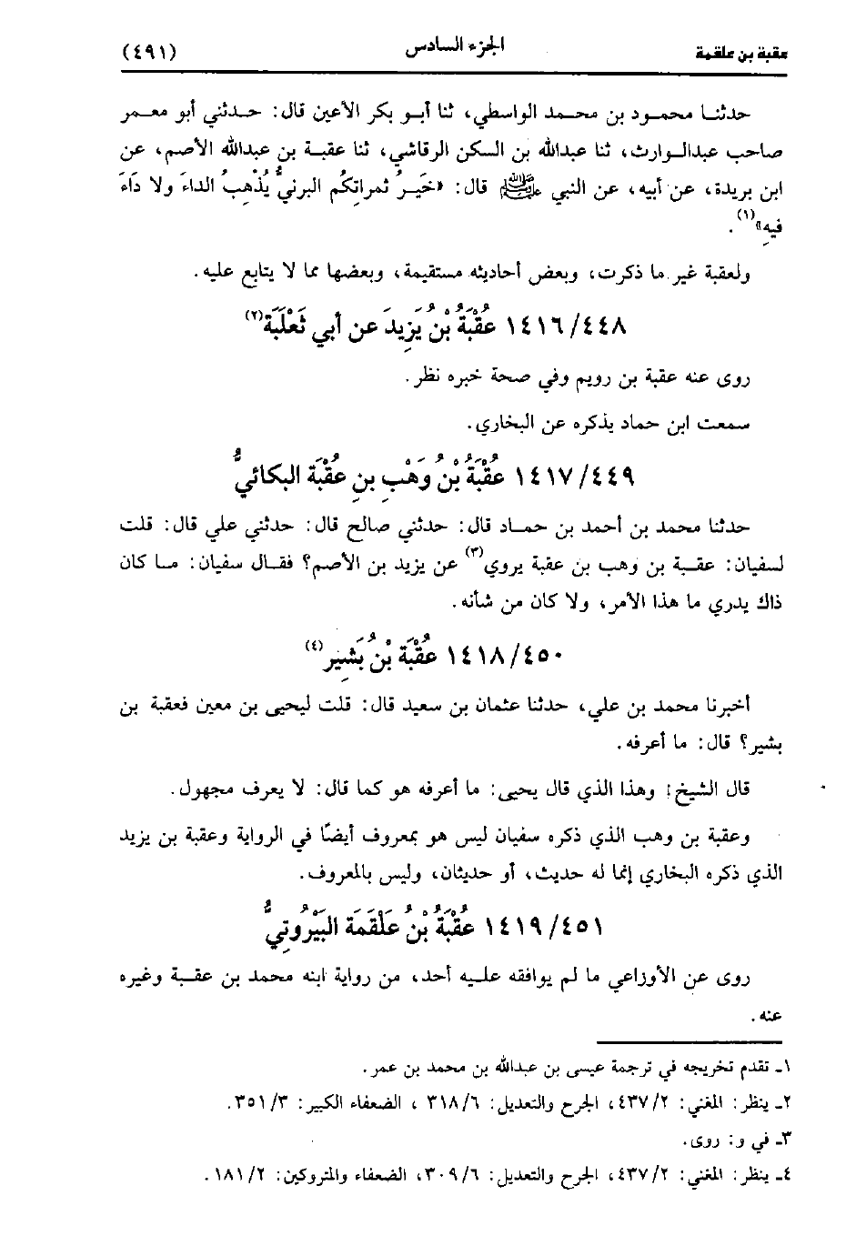 حَدَّثَنَا مُحَمد بن علي، حَدَّثَنا عُثْمَانُ بْنُ سَعِيد، قالَ: قُلتُ ليحيى بْن مَعِين فعقبة بْن بشير قَال: مَا أعرفه.