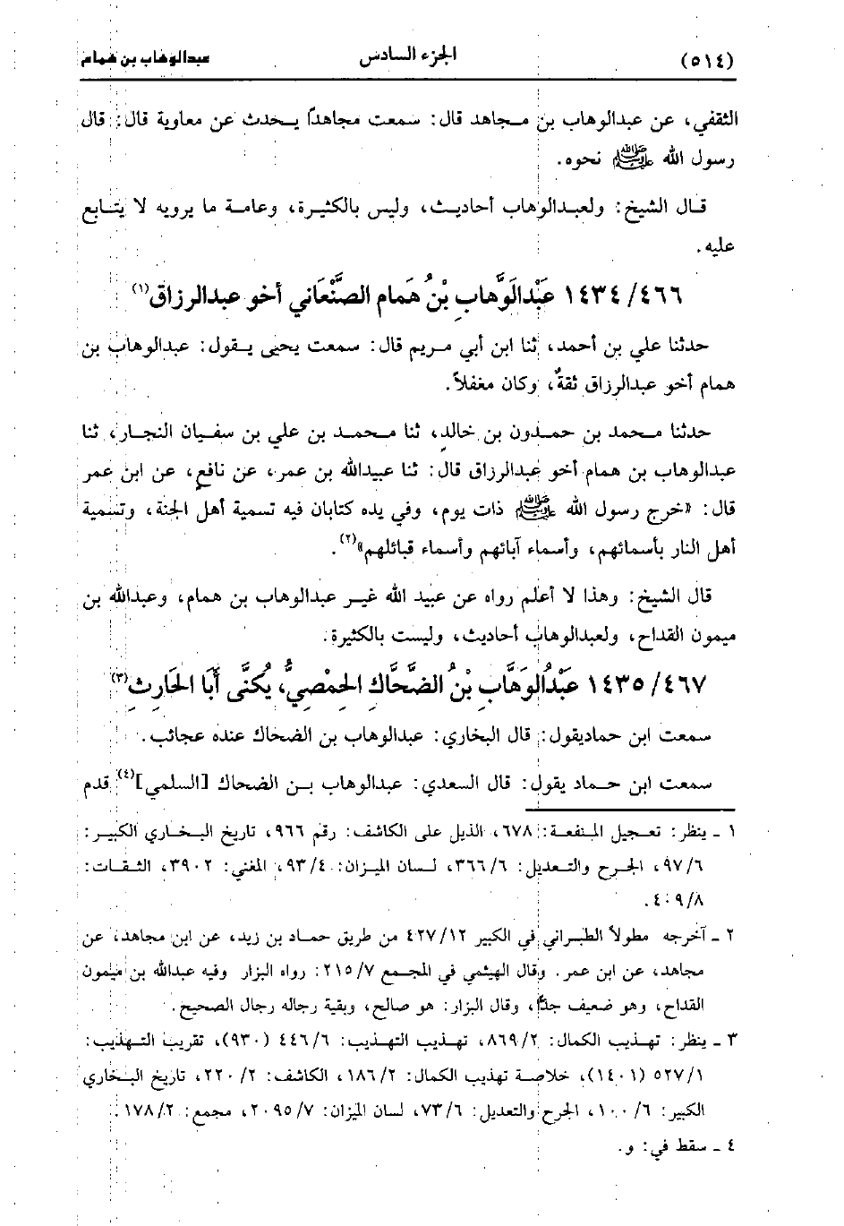 1434- عَبد الوهاب بْن همام الصنعاني أخو عَبد الرَّزَّاق.