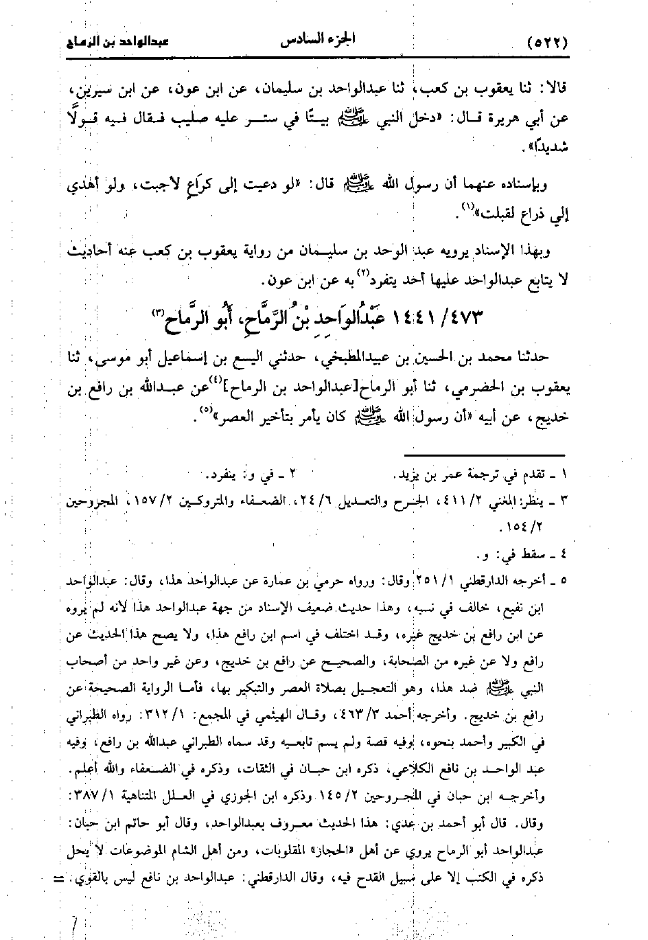 حَدَّثَنَا ابن حماد، حَدَّثَنا معاوية، عَن يَحْيى، قَالَ: عَبد الواحد بْن سليم بصري ضعيف.
