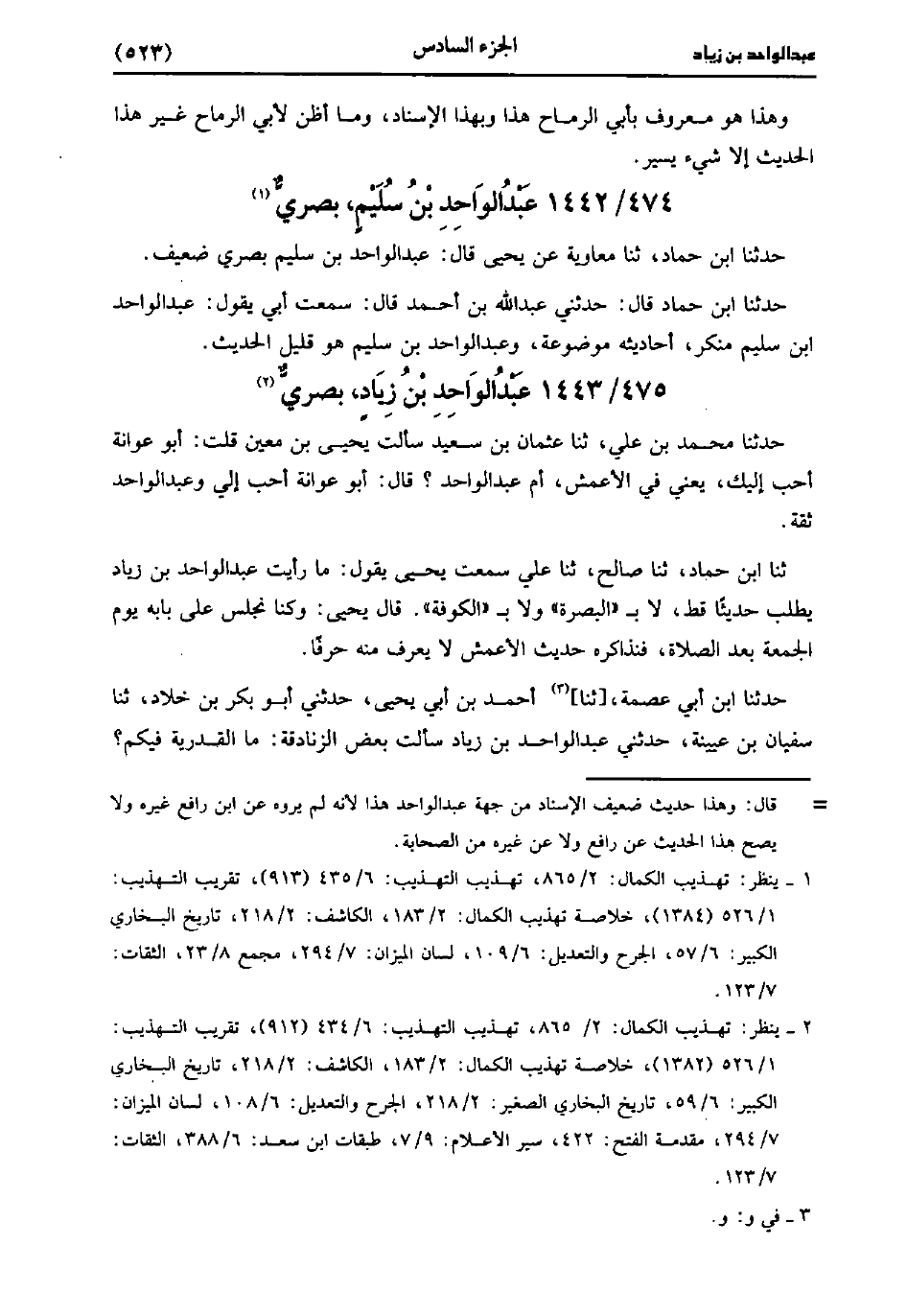 وعبد الواحد من أجلة أهل البصرة وقد حدث عَنْهُ الثقات المعروفون بأحاديث مستقيمة، عَنِ الأَعْمَش وغيره، وَهو ممن يصدق فِي الروايات
