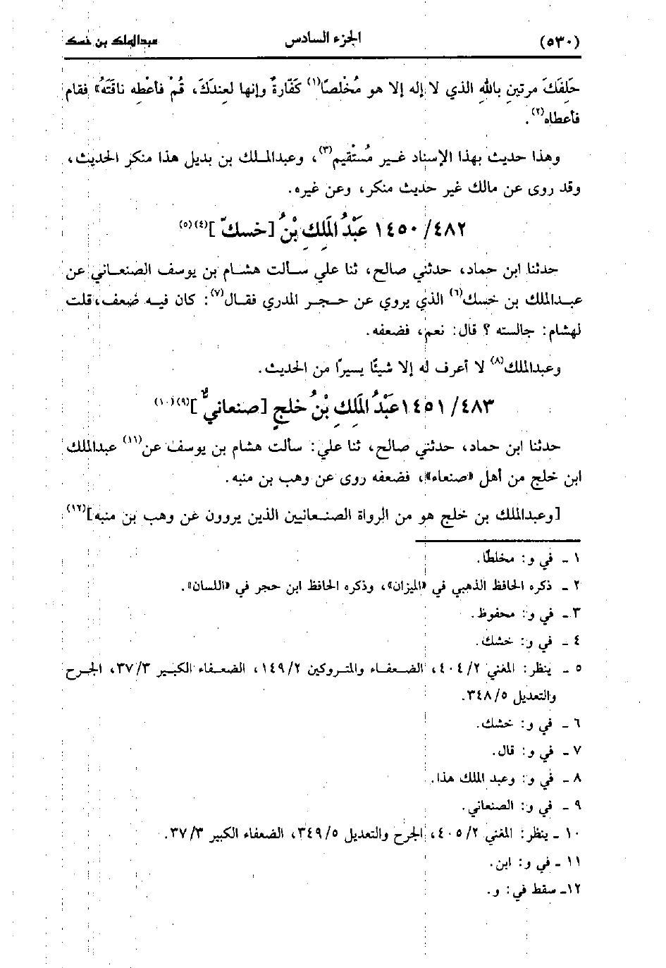 حَدَّثَنَا ابن حماد، حَدَّثني صالح، حَدَّثَنا علي سألت هشام بن يوسف عن عَبد الملك بْن خلج من أهل صنعاء فضعفه روى عن وهب بْن منبه.