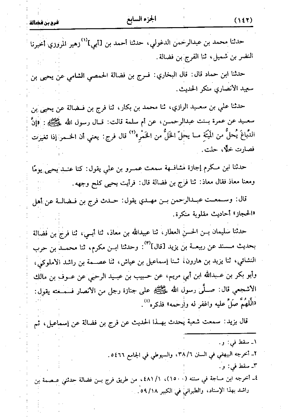 حَدَّثَنا مُحَمد بْنُ عَبد الرَّحْمَنِ الدغولي، حَدَّثَنا أحمد بن أَبِي زهير المروزي، أَخْبَرنا النضر بن شميل، حَدَّثَنا الفرج بن فضالة.