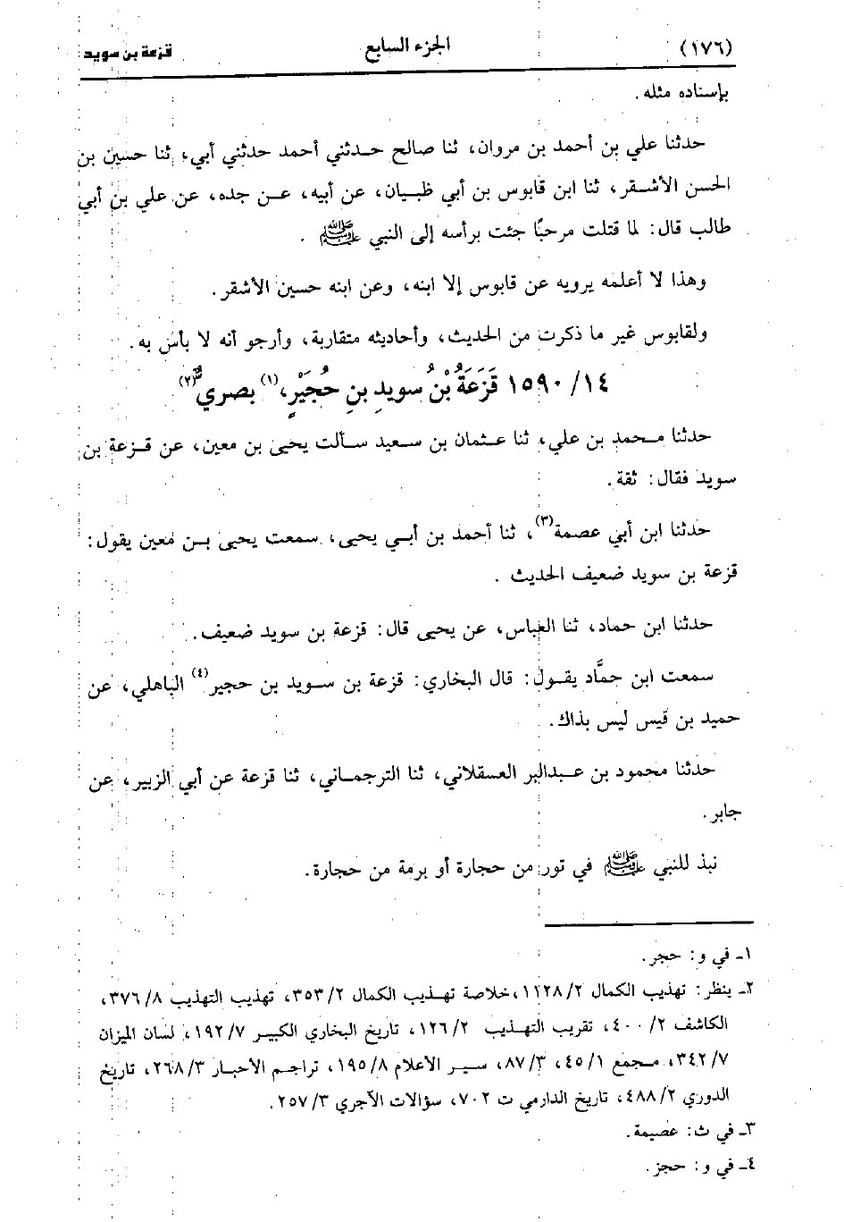 حَدَّثَنَا مُحَمد بْنُ عَلِيٍّ، حَدَّثَنا عُثْمَانُ بْنُ سَعِيد سألت يَحْيى بْن مَعِين عن قزعة بن سويد؟ فَقال: ثِقةٌ.