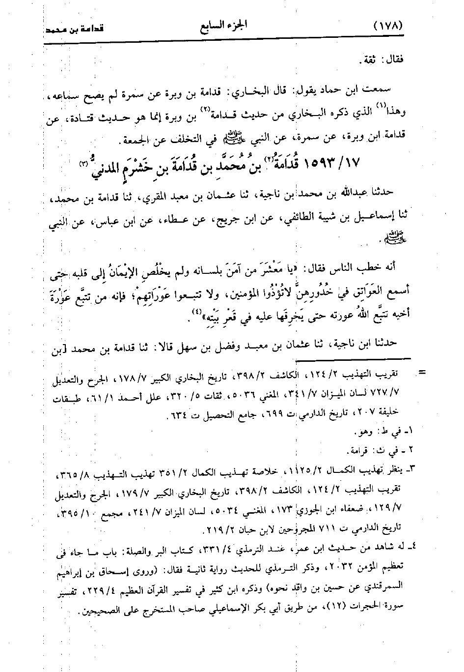 1593- قدامة بن مُحَمد بن قدامة بن خشرم المدني.