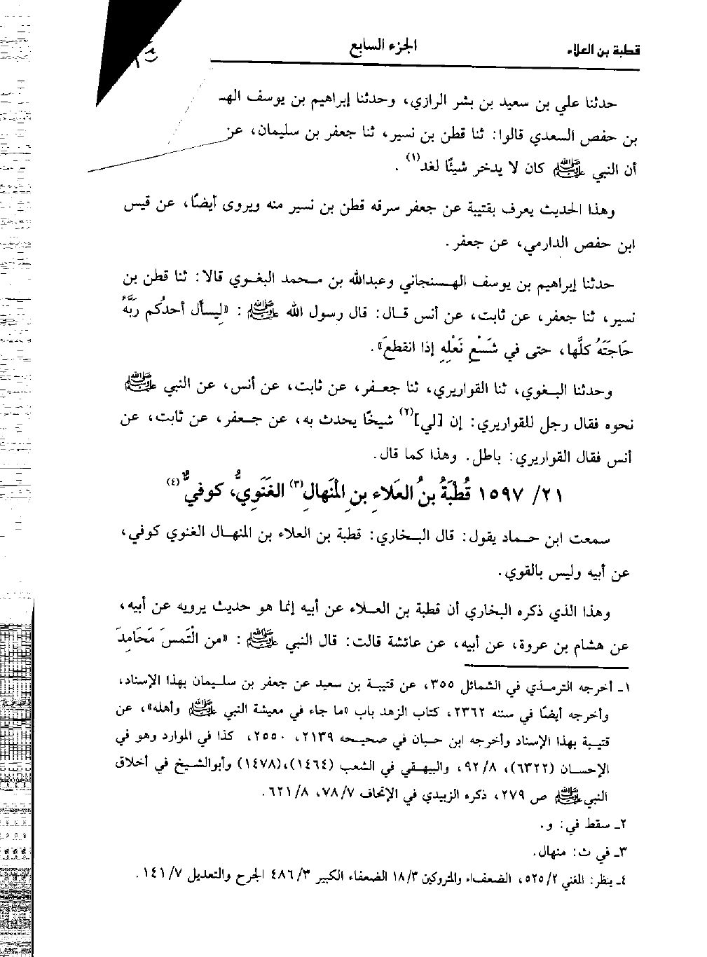 1597- قطبة بن العلاء بن المنهال الغنوي كوفي.