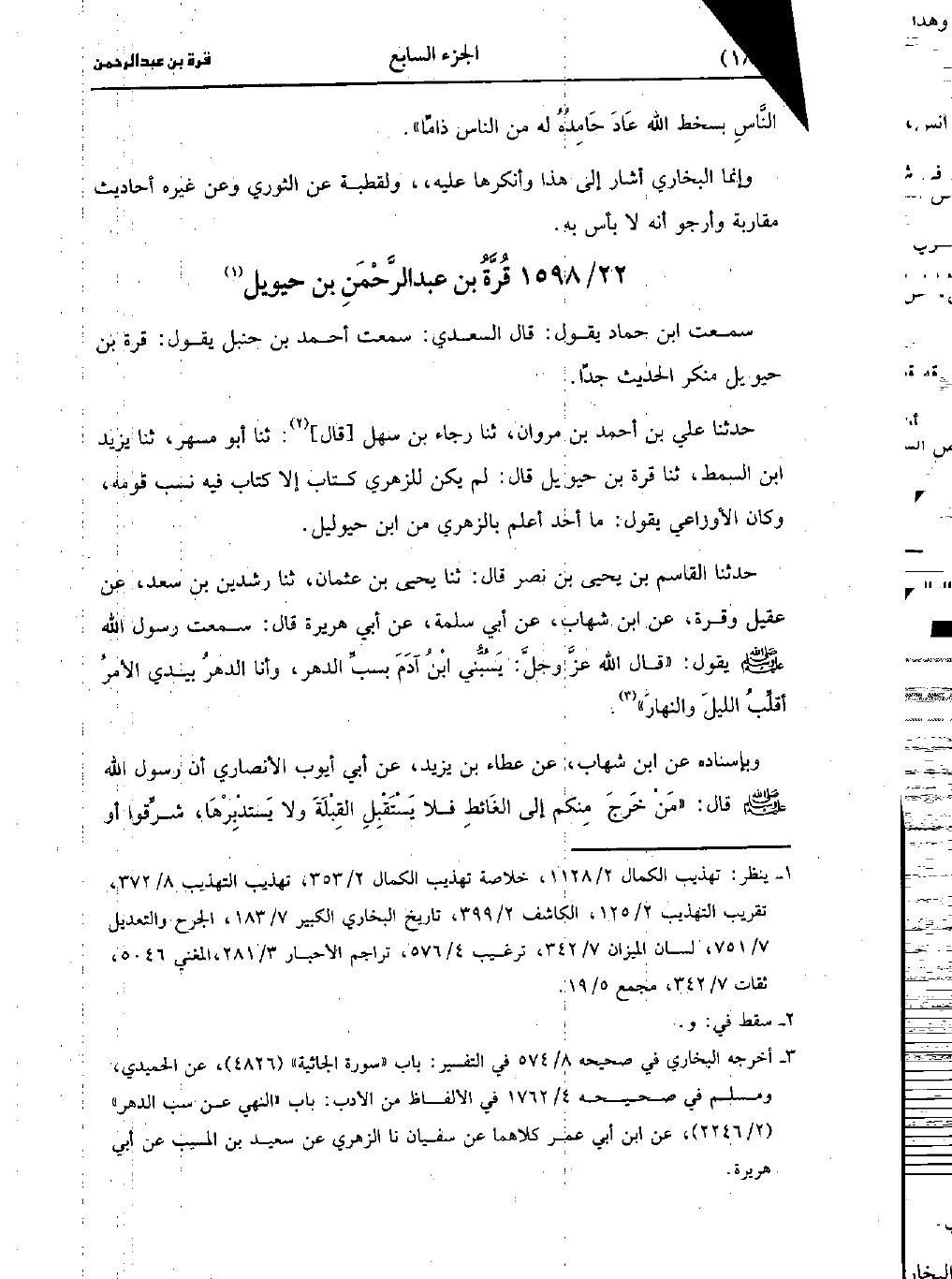 1598- قرة بن عَبد الرحمن بن حيوئل.
