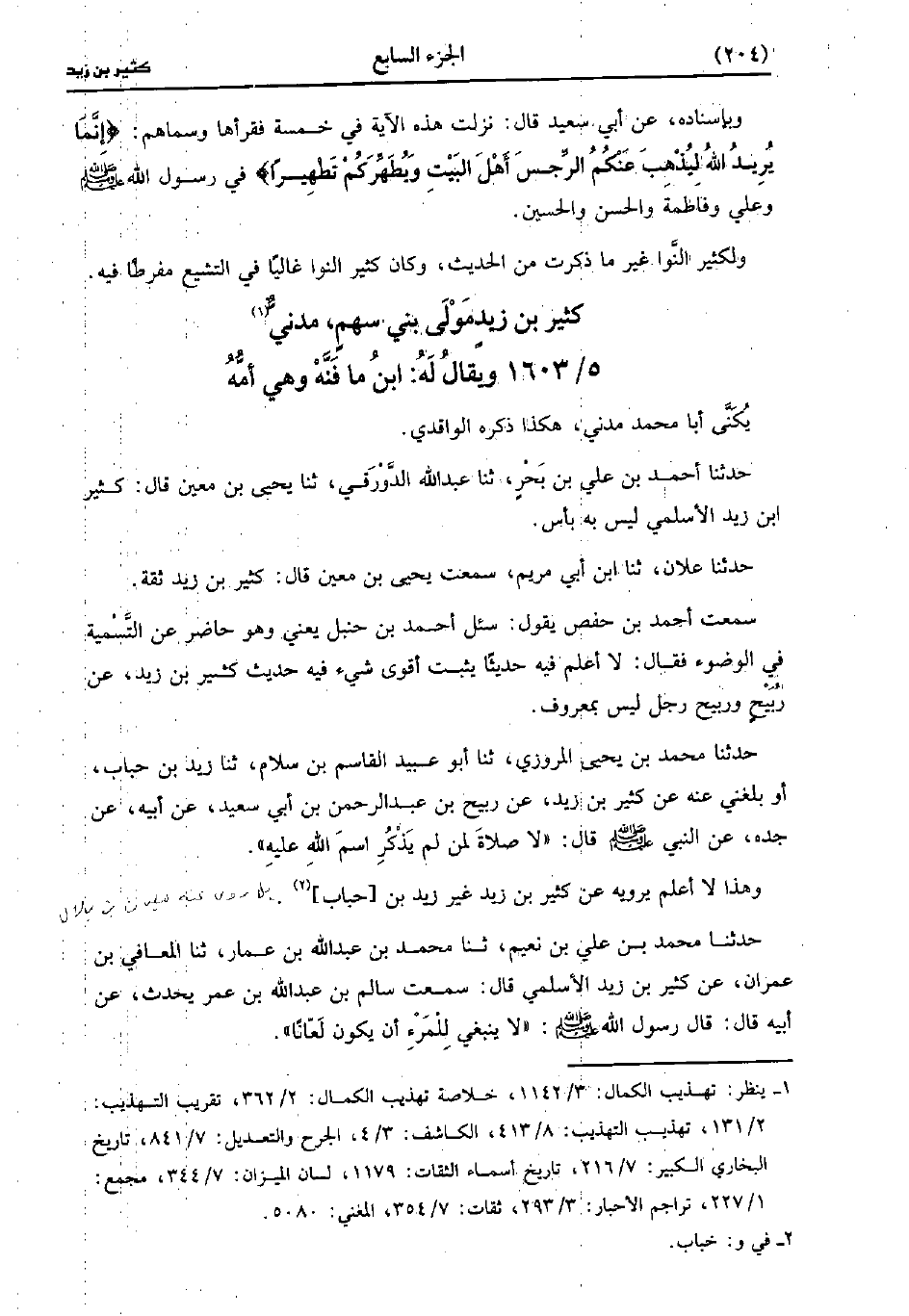 1603- كثير بن زيد مولى بني سهم مدني ويقال له بن صافية وهي أمه.