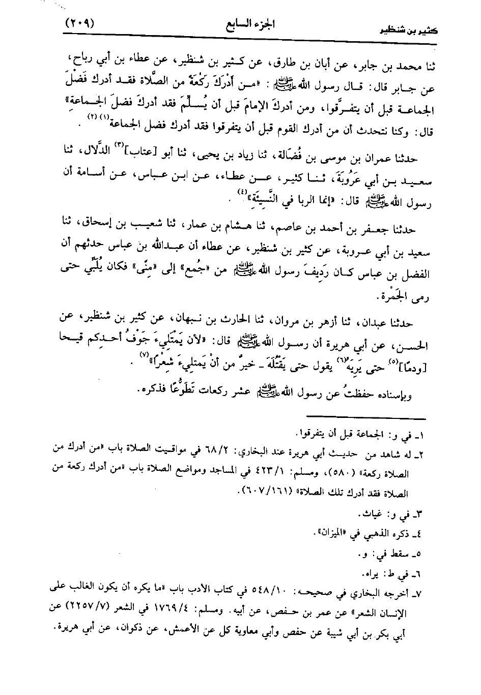 حَدَّثَنَا عِمْرَانُ بْنُ موسى بن فضالة، حَدَّثَنا زِيَادُ بْنُ يَحْيى، حَدَّثَنا أبو عتاب الدلال، حَدَّثَنا سَعِيد بْنُ أَبِي عَرُوبة، حَدَّثَنا كَثِيرٍ عَنْ عَطَاءٍ، عنِ ابْنِ عَبَّاسٍ عَنْ أُسَامَةَ، أَن رسُول الله صَلَّى الله عَلَيهِ وَسلَّمَقال إِنَّمَا الرِّبَا فِي النَّسِيئَةِ.