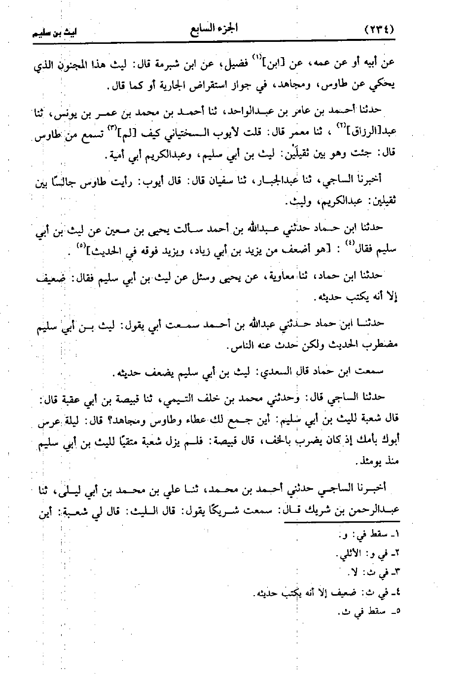 حَدَّثَنَا ابن حماد، حَدَّثني عَبد اللَّهِ بْنُ أَحْمَدَ سَمِعْتُ أَبِي يقول لَيْث بن أبِي سُلَيم مضطرب الحديث ولكن حدث عنه الناس.