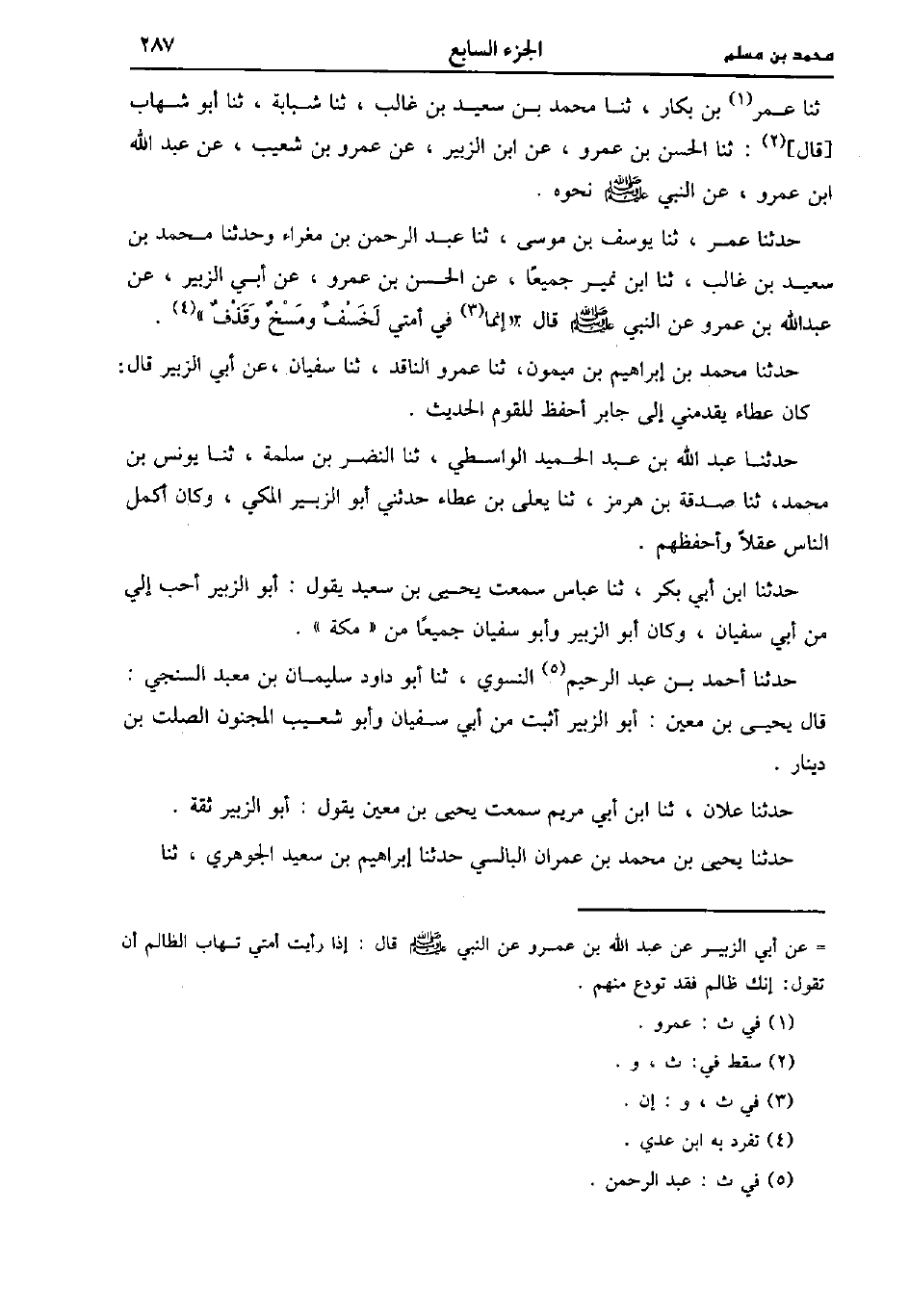 حَدَّثَنَا الْحُسَيْنُ بْنُ عَبد اللَّهِ المالكي، حَدَّثَنا هِشَامُ بْنُ عَمَّارٍ، قَالَ: سَمِعْتُ سويد بن عَبد العزيز يقول: قَال لي شُعْبَة لا تأخذ، عَن أَبِي الزبير فإنه لا يحسن يصلي قَالَ ثم ذهب فكتب عنه.
