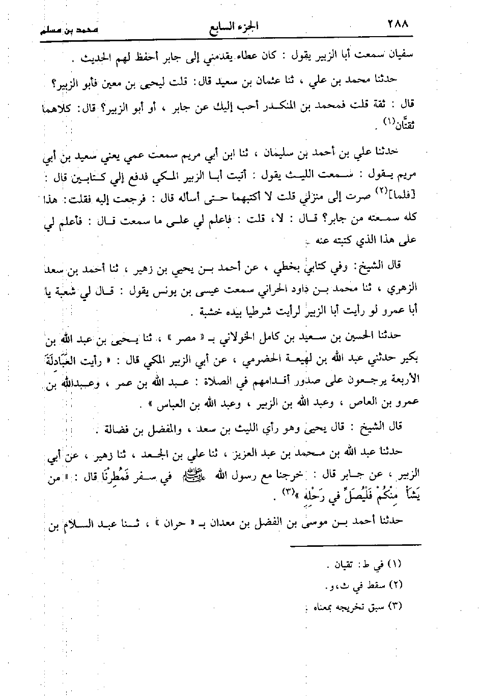 حَدَّثَنَا يَحْيى الْحَنَّائِيُّ، حَدَّثَنا عُبَيد اللَّهِ بْنُ مُعَاذٍ، حَدَّثَنا أَبِي عَنْ شُعْبَة، عَن أَبِي الزُّبَيْرِ عَنْ جَابِرٍ صَلَّى رَسُولُ اللَّهِ صَلَّى اللَّهُ عَلَيْهِ وَسَلَّمَ عَلَى النَّجَاشِيِّ فَكُنْتُ في الصف الثاني (ح) وَحَدَّثَنَا عُمَر بْنُ بَكَّارٍ الْقَافِلانِيُّ، حَدَّثَنا عَبَّاسُ بْنُ مُحَمد سَمِعْتُ يَحْيى بْنَ مَعِين يَقُولُ لَمْ يَسْمَعْ أَبُو الزُّبَيْرِ مِنْ عَبد اللَّهِ بْنِ عَمْرو وَلَمْ يَرَهُ يَعْنِي حَدِيثِ الْحَسَنِ بْنِ عَمْرو، عَن أبي الزبير عن عَبد اللَّه بْنِ عَمْرو عَنِ النَّبِيِّ صَلَّى اللَّهُ عَلَيهِ وَسلَّمَ إِذَا رَأَيْتَ أمتي تهاب الظالم تَقُولَ إِنَّكَ ظَالِمٌ فَقَدْ تُوُدِّعَ منهم