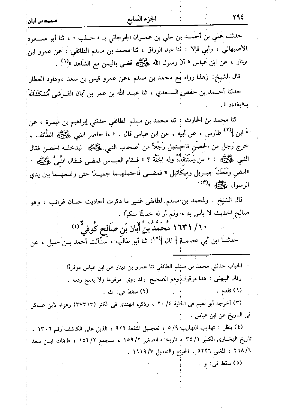 حَدَّثَنَا مُحَمد بْنُ أَحْمَدَ بْنِ الْحُسَيْنِ الأَهْوَازِيُّ، حَدَّثَنا علي بن معبد وحدثنا بن أبي قرصافة، حَدَّثَنا أبو أمية، قالا: حَدَّثَنا إِسْحَاقُ بْنُ مَنْصُورٍ، حَدَّثَنا معروف بن واصل، قَالَ: رأيتُ سفيان الثَّوْريّ يكتب بين يدي مُحَمد بن مسلم الطائفي.