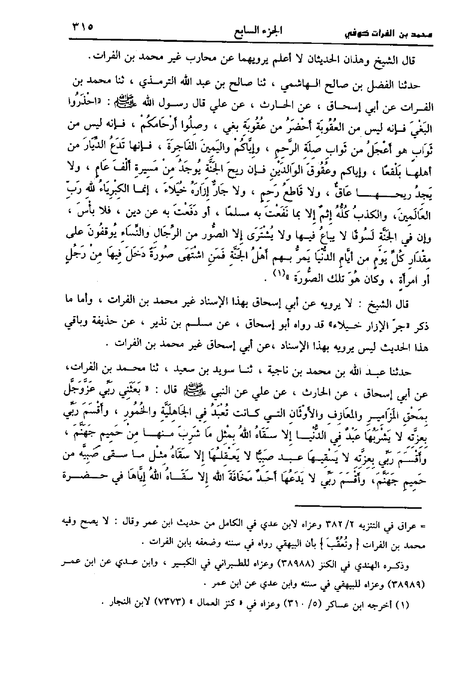 حَدَّثَنَا مُحَمد بْنُ خَلَفِ بْنِ الْمِرْزِبَانِ، حَدَّثني أَبُو العباس القرشي سَمِعْتُ عَلِيّ بن المديني يقول مُحَمد بن أَبِي الفرات كوفي روى عن حبيب بن أَبِي ثابت أحاديث مناكير وضعفه.