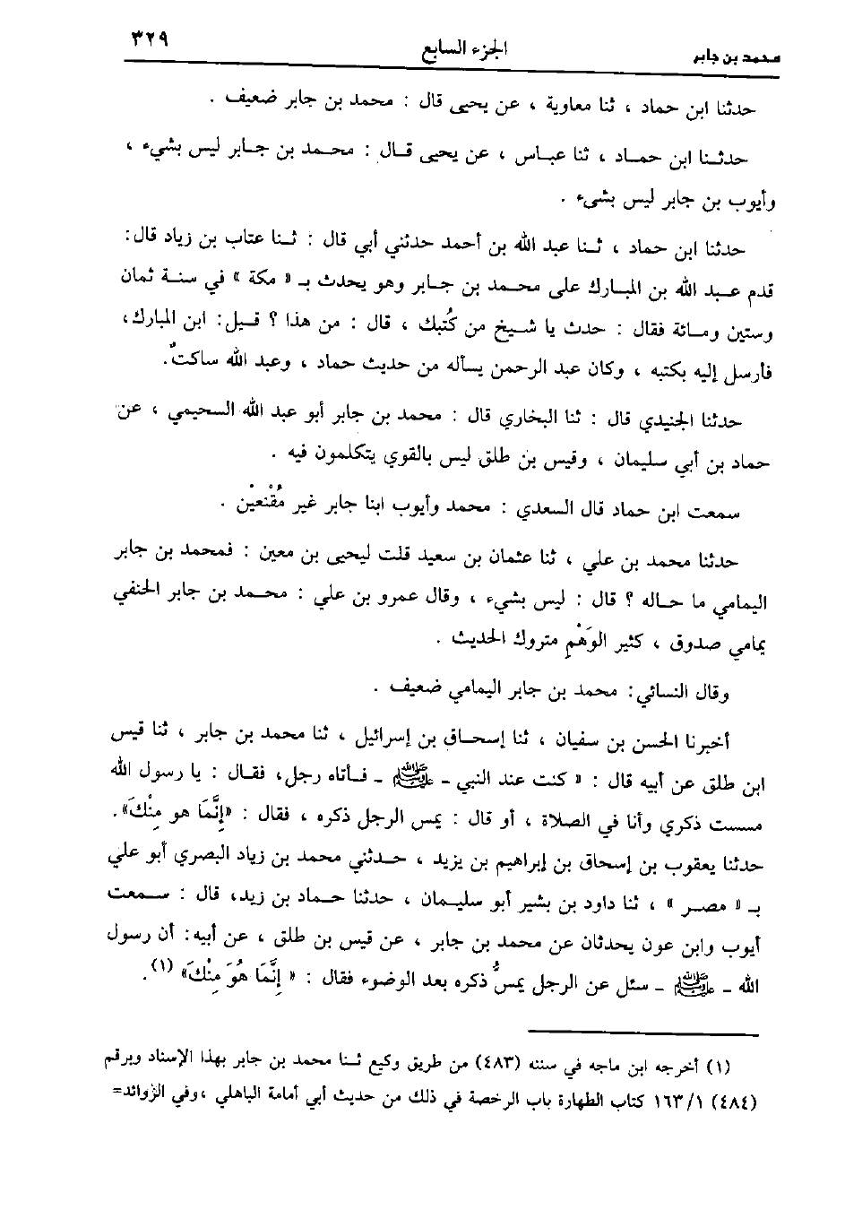 وقال النسائي مُحَمد بن الحجاج المصفر متروك الحديث.