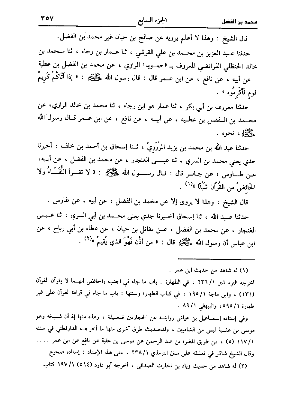 حَدَّثَنَا الحسن وَحَدَّثنا يَحْيى بن إسماعيل، حَدَّثَنا جدي، حَدَّثَنا مُحَمد بْنِ الْفَضْلِ عَنْ كُرْزِ بْنِ وَبَرَةَ عَنْ عَطَاءٍ، عنِ ابْنِ عُمَر أَنَّ النَّبِيَّ صَلَّى اللَّهُ عَلَيه وسَلَّم قَال: إِذَا ذُكِرَ أَصْحَابِي فَأَمْسِكُوا، وَإذا ذُكِرَ الْقَدَرُ فَأَمْسِكُوا.