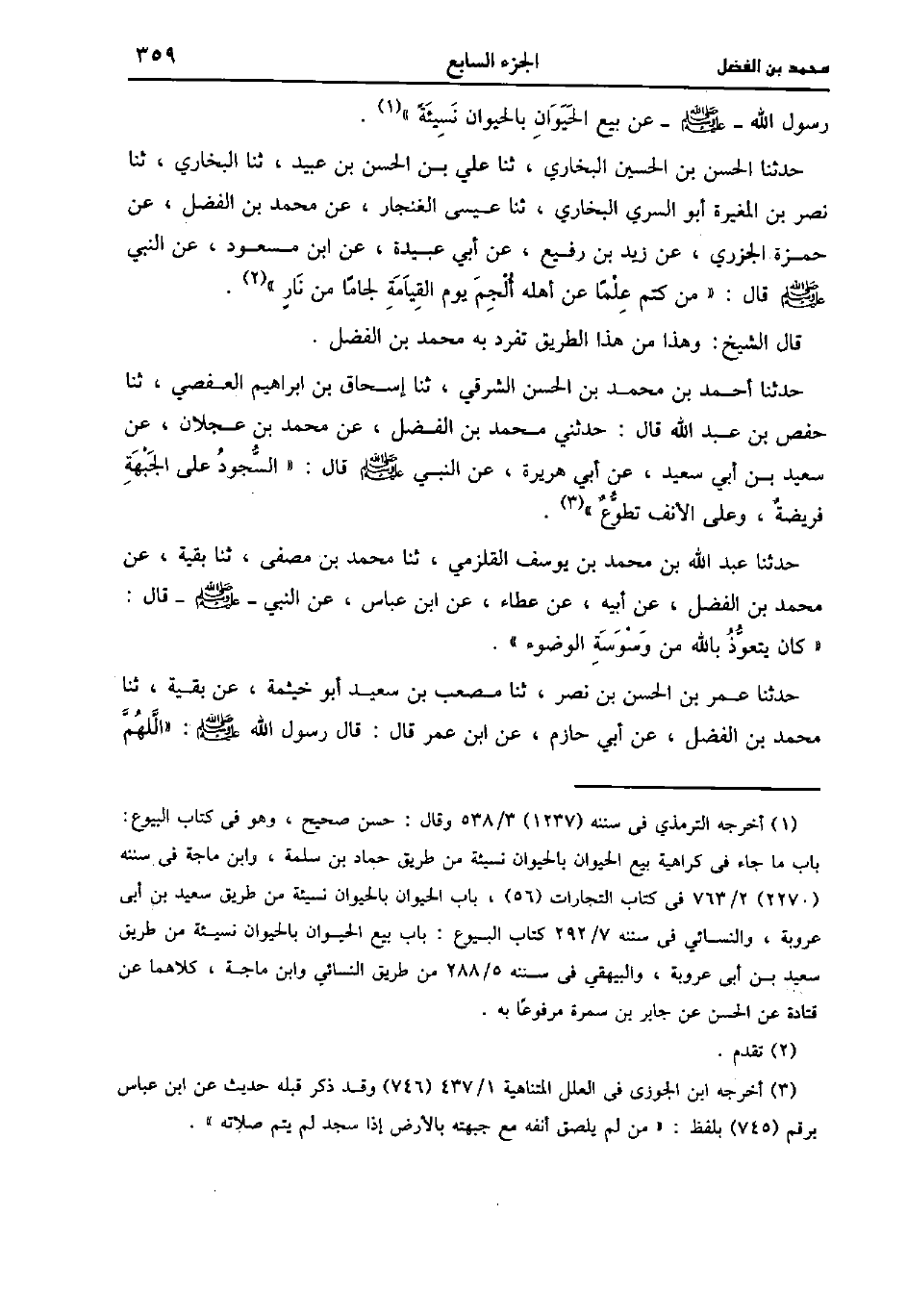 قَالَ الشَّيْخُ: وهذا لا أعلم يَرْوِيهِ عَنْ صَالِحِ بْنِ حَيَّانَ غَيْرُ مُحَمد بْنِ الْفَضْلِ.
