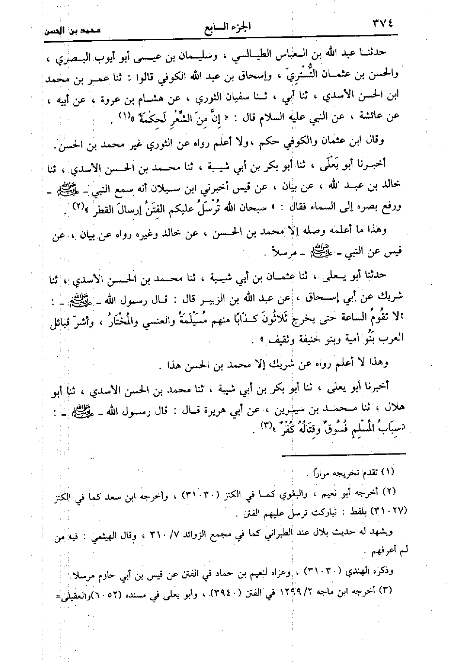 حَدَّثَنَا ابن حَمَّادٍ، حَدَّثني عَبد اللَّهِ بْنُ أحمد سألت أَبِي عن مُحَمد بْن الحسن بْن أَبِي يزيد الهمذاني فقال ما أراه يساوي شيئا كَانَ ينزل عند مقابر الخيزران جعل يحدث بأحاديث كما يحدث بها بن أَبِي زائدة، وأَبُو معاوية.
