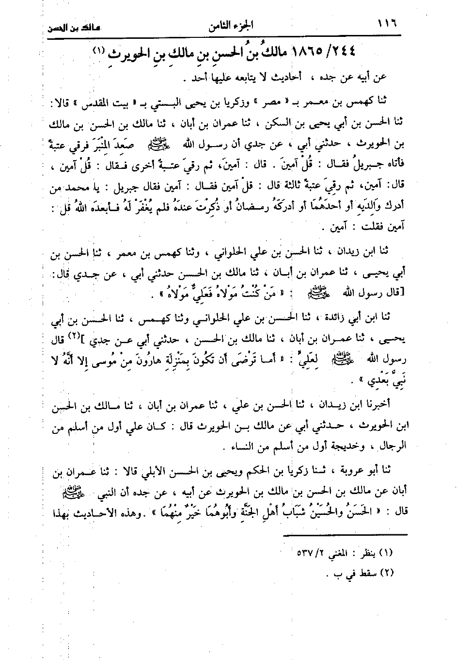 1865- مالك بْن الحسن بْن مَالِك بْن الحويرث.