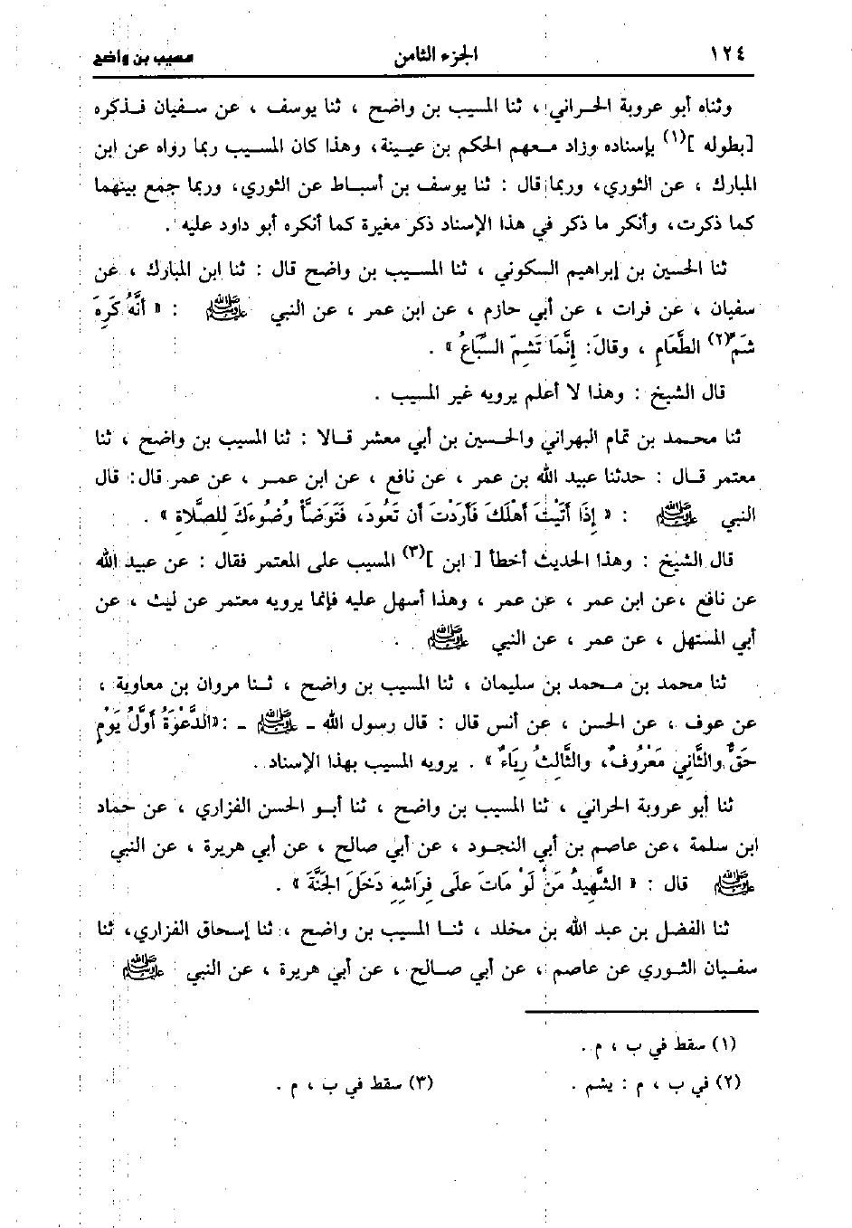 قَالَ الشَّيْخ: وهذا لا أعلم يرويه غير المُسَيَّب.