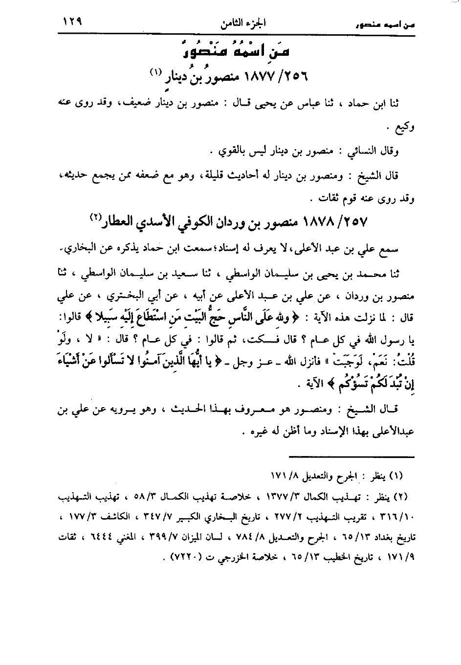 1878- منصور بْن وردان الكوفي الأسدي العطار.