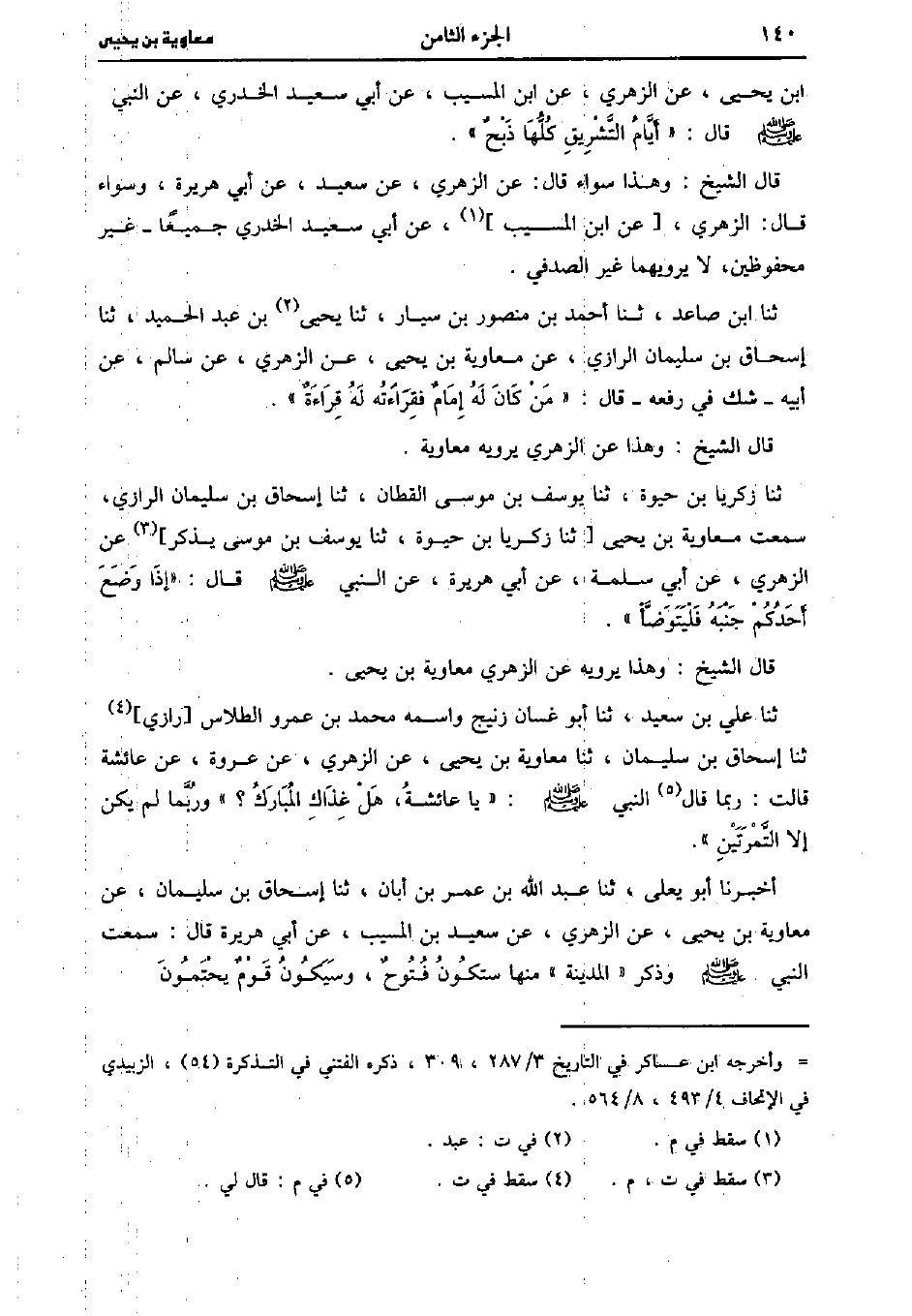 قَالَ الشَّيْخ: وَهَذِهِ الأحاديث، عنِ الزُّهْريّ يرويها عَنْهُ معاوية عن يَحْيى.