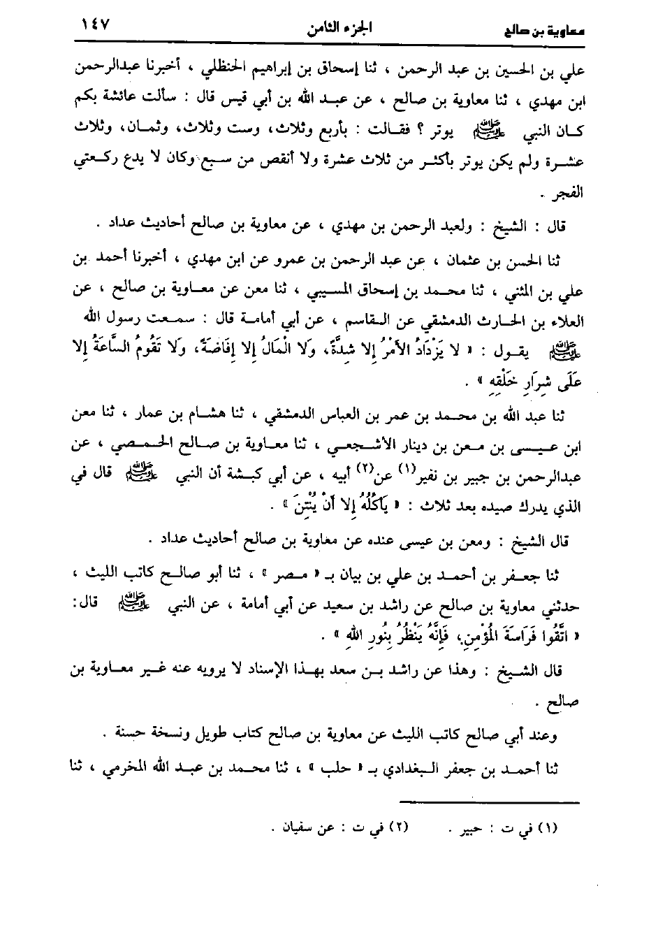 حَدَّثَنَا مُحَمد بن علي، حَدَّثَنا عُثْمَانُ بْنُ سَعِيد، قالَ: قُلتُ ليحيى بْن مَعِين فمعاوية بْن هِشَام فِي الثَّوْريّ قَالَ صالح وليس بذاك.