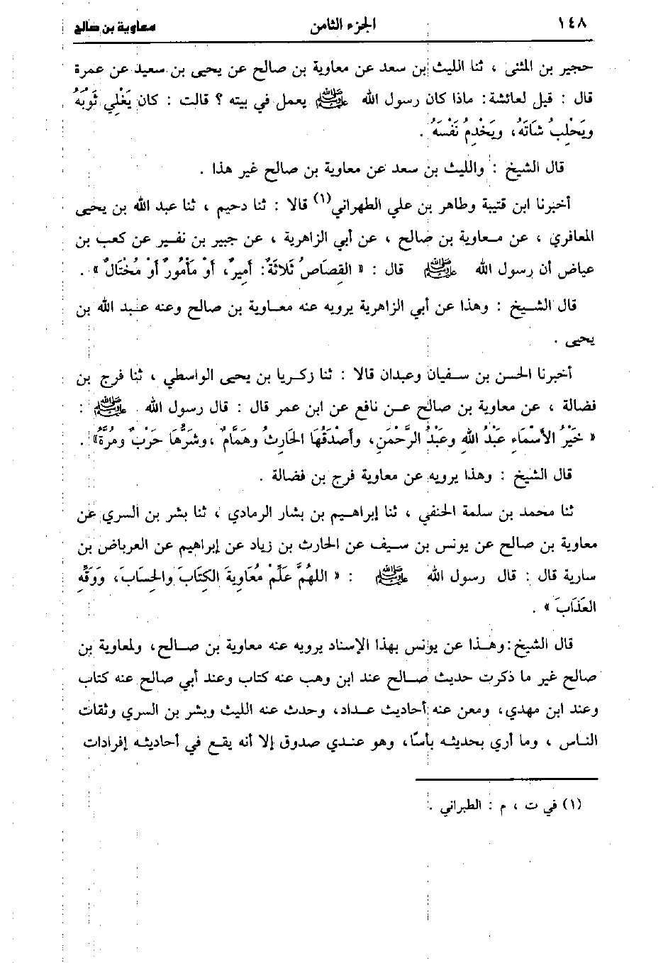 قَالَ الشَّيْخُ: وَهَذَا الحديث لا يرويه عَنْهُ غير معاوية.