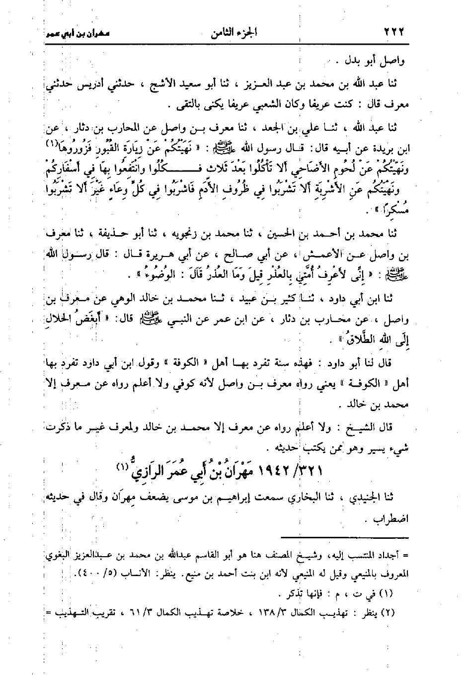 قَالَ لنا أَبُو دَاوُد فهذه سنة تفرد بها أهل الكوفة وقول بن أَبِي دَاوُد تفرد بها أهل الكوفة يعني رواه معرف بْن واصل لأنه كوفي، ولاَ أعلم رواه عن معرف إلاَّ مُحَمد بْن خَالِد.