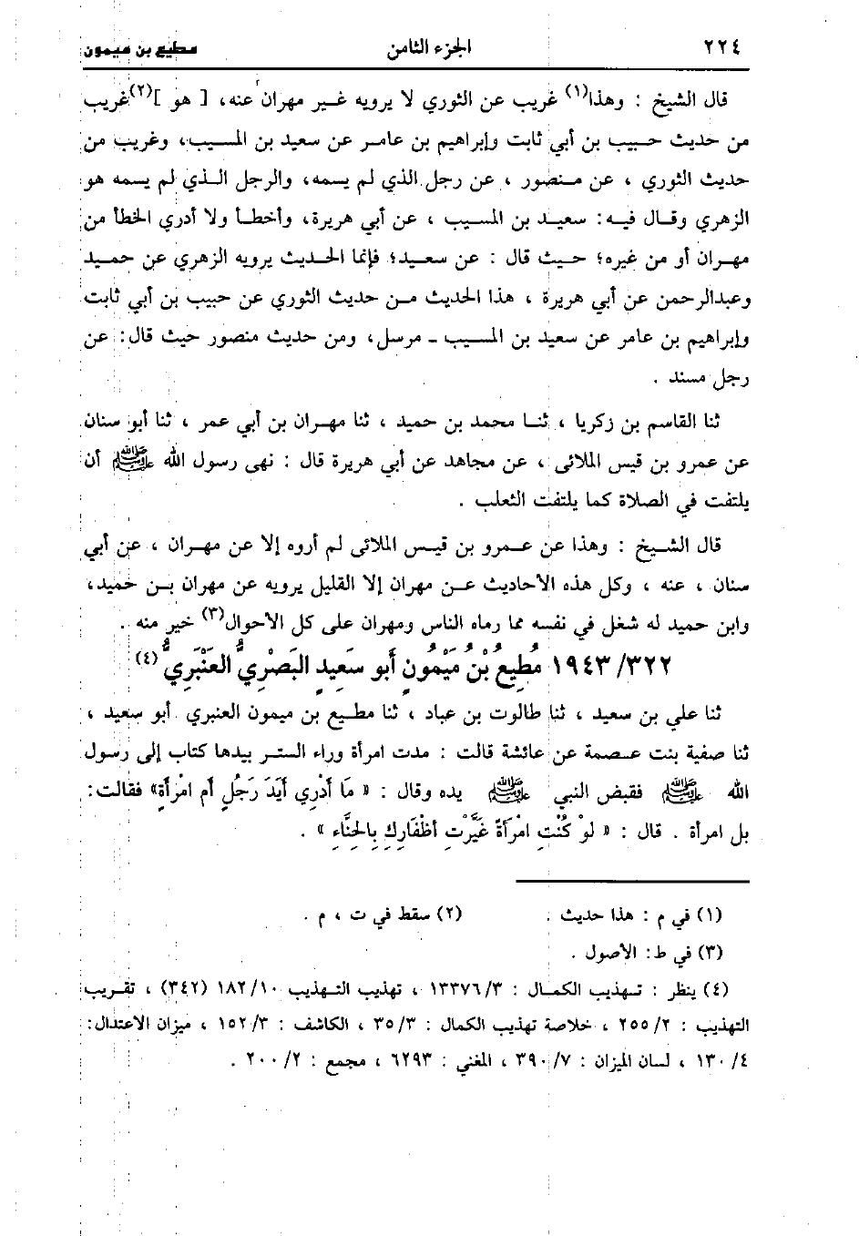 قال الشيخ: وهذا غريب عن الثَّوْريّ لا يرويه غير مَهْرَان عَنْهُ، وَهو غريب من حديث حبيب بْن أَبِي ثَابِت وإبراهيم بْن عامر عن سَعِيد بْن المُسَيَّب وغريب من حديث الثَّوْريّ عن مَنْصُور عن رجل الَّذِي لم يسمه والرجل الَّذِي لم يسمه هو الزُّهْريّ وَقَالَ فيه عَنْ سَعِيد بْنِ المُسَيَّب، عَن أَبِي هُرَيْرَةَ وأخطأ، ولاَ أدري الخطأ من مَهْرَان أو من غيره حيث قَالَ عن سَعِيد فإنما الحديث يرويه الزُّهْريّ عن حميد، وَعَبد الرَّحْمَن، عَن أَبِي هُرَيْرَةَ هذا الحديث من حديث الثَّوْريّ عَنْ حَبِيبِ بْنِ أَبِي ثَابِت وإبراهيم بْن عامر عن سَعِيد بْن المُسَيَّب مرسل ومن حديث مَنْصُور حيث قَالَ عن رجل مسند.