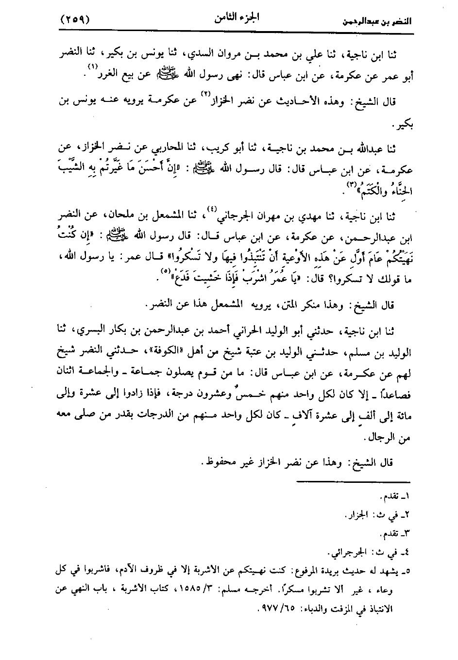 قَالَ الشَّيْخ: وهذا عن نَضْر الخزاز غير محفوظ