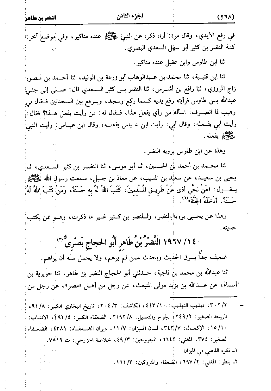 1967- النضر بْن طاهر أَبُو الحجاج بصرى.