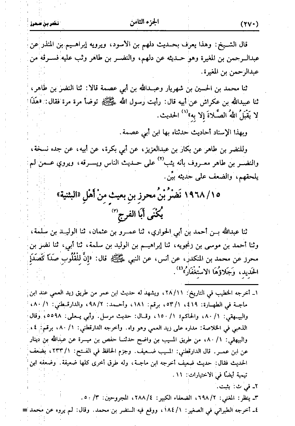 1968- نضر بْن محرز بْن بعيث من أهل البثنية، يُكَنَّى أبا الفرج.