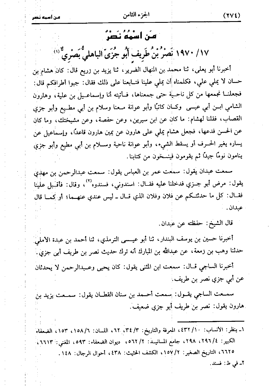 1970- نصر بْن طريف أَبُو جزي الباهلى بصرى.