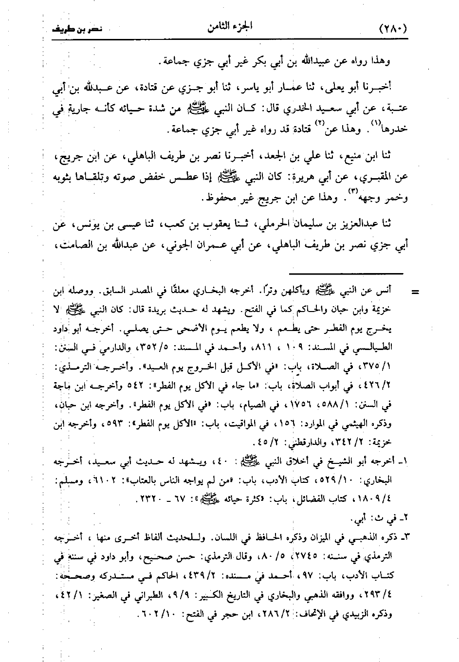 حَدَّثَنَا ابن منيع، حَدَّثَنا عَلِيُّ بْنُ الْجَعْدِ، أَخْبَرنا نَصْرُ بْنُ طَرِيفٍ الْبَاهِلِيُّ، عنِ ابْنِ جُرَيج، عَن الْمَقْبُرِيِّ، عَن أَبِي هُرَيْرَةَ كَانَ النَّبِيُّ صَلَّى اللَّهُ عَلَيهِ وَسلَّمَ إِذَا عَطَسَ خَفَضَ صَوْتَهُ وَتَلَقَّاهَا بِثَوْبِهِ وَخَمُرَ وَجْهُهُ وهذا، عنِ ابْن جُرَيج غير محفوظ.