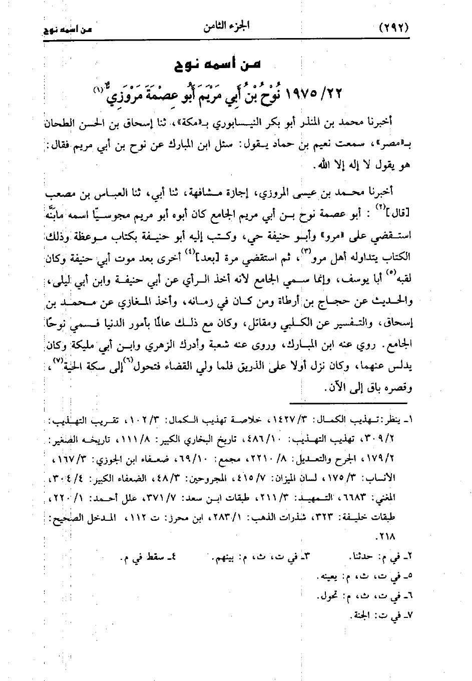 1975- نوح بْن أبي مريم أَبُو عصمة مروزي.