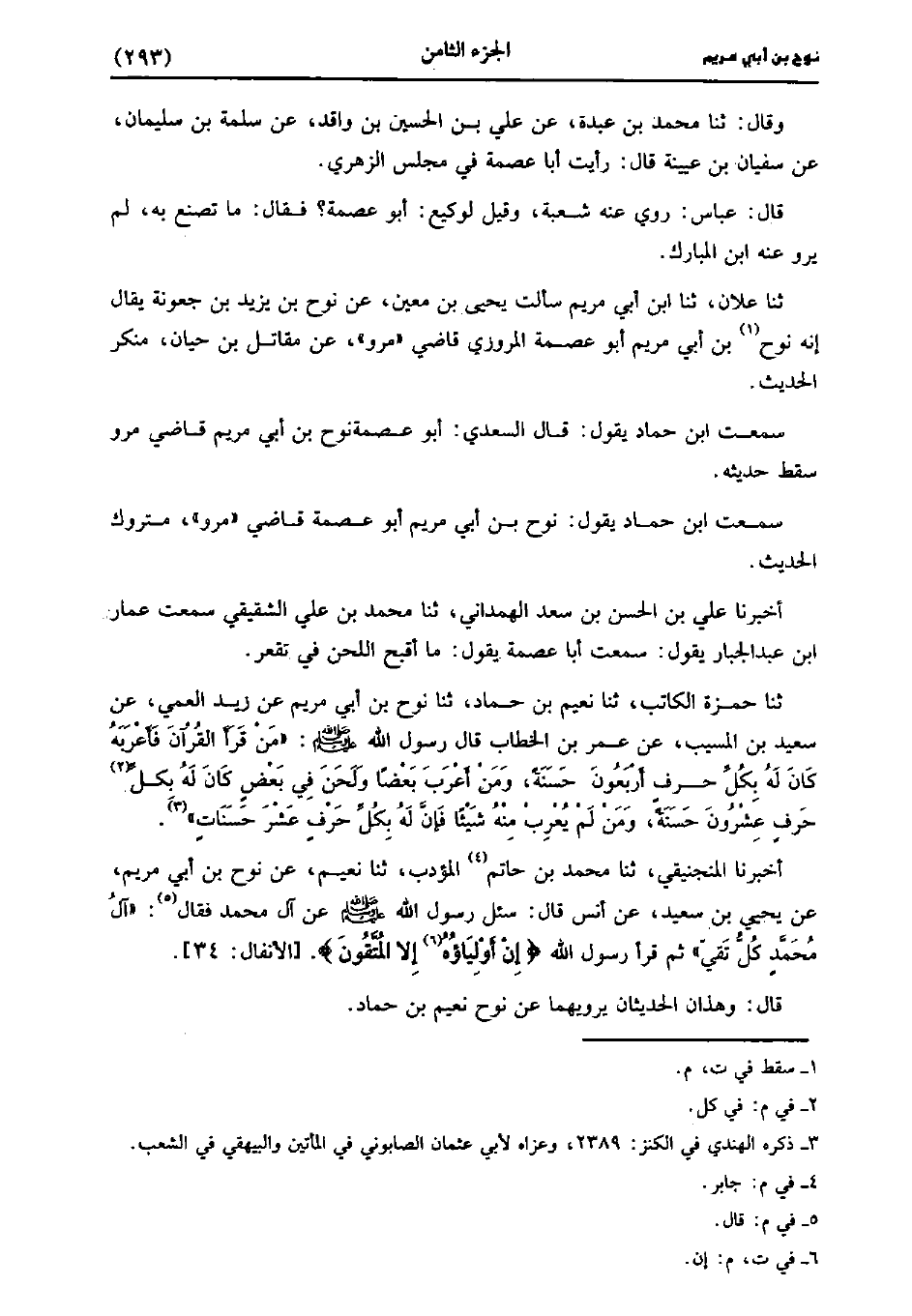 حَدَّثَنَا عَلانٌ، حَدَّثَنا ابْنُ أَبِي مريم سألت يَحْيى بْن مَعِين عن نوح بْن يَزِيد بْن جعونة يقال إنه نوح بْن أبي مريم أَبُو عصمة المروزي قاضى مرو عن مقاتل بْن حيان منكر الحديث.