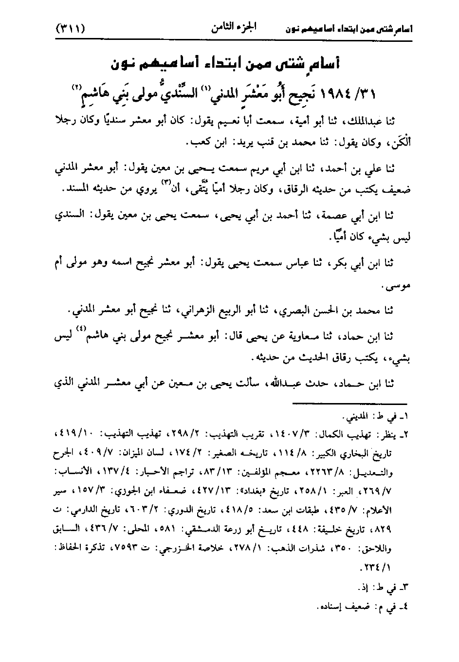 1984- نجيح أبو معشر المديني السندي مولى بني هاشم.