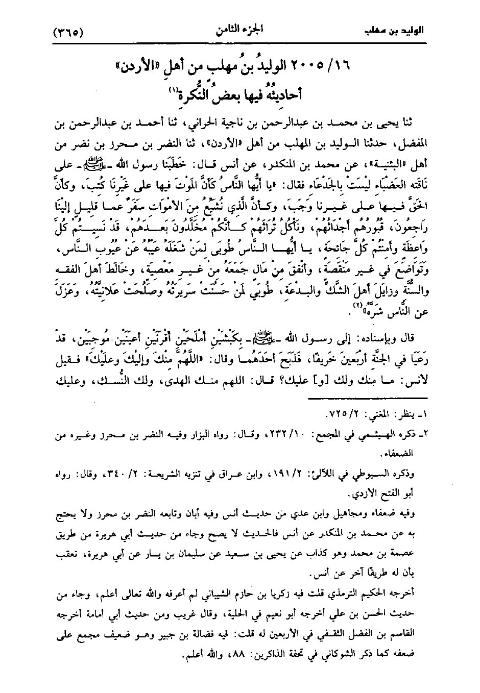 2005- الوليد بْن مهلب من أهل الأردن أحاديثه فِيهَا بعض النكرة.
