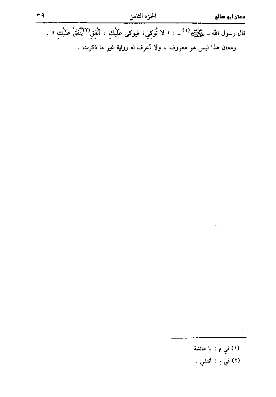 قَالَ رَسُولُ اللَّهِ صَلَّى اللَّهُ عَلَيْهِ وَسَلَّمَ: لاَ توكئ فيوكأ عَلَيْكَ أَنْفِقْ يُنْفَقْ عَلَيْكَ.