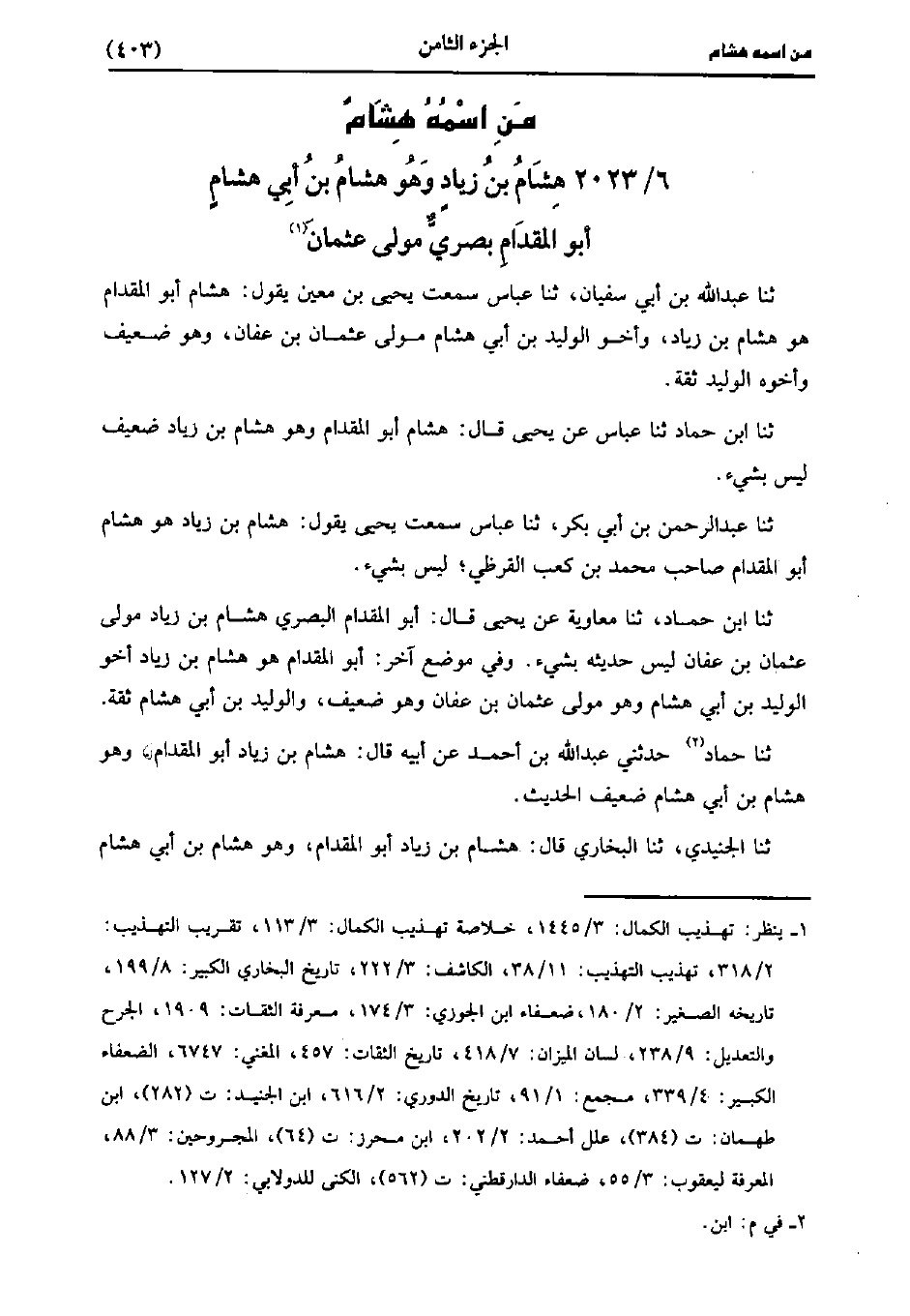 2023- هشام بْن زياد، وَهو هِشَام بْن أبي هِشَام أَبُو المقدام بصري مولى عثمان.