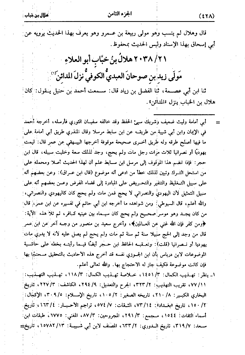 2038- هلال بْن خباب أَبُو العلاء مولى زيد بْن صوحان العبدي الكوفي نزل المدائن.