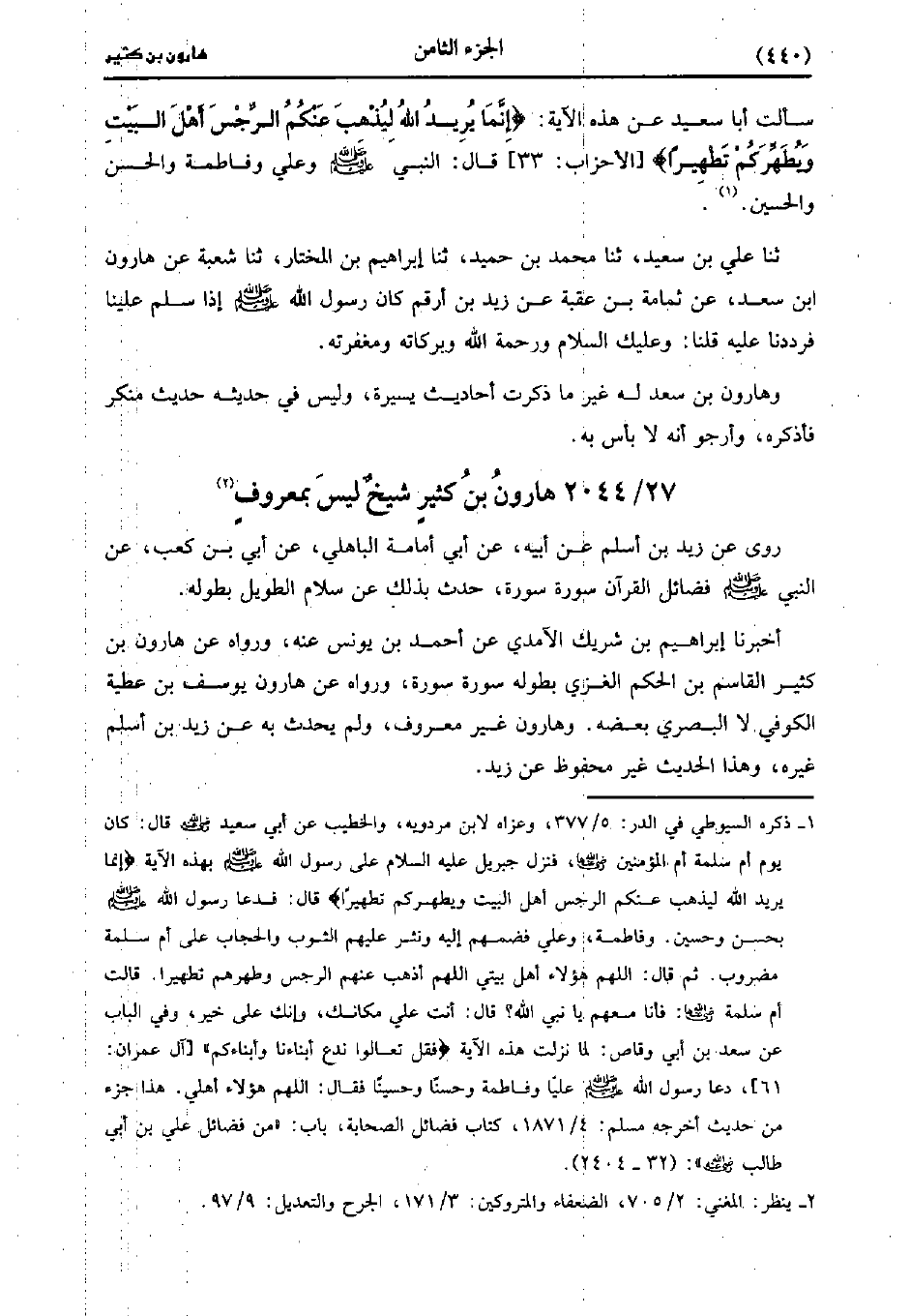 2044- هارون بْن كثير شيخ ليس بمعروف.