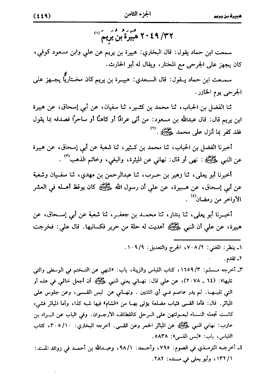 سمعتُ ابْن حَمَّاد يَقُول: قَالَ السعدي هبيرة بْن يريم كَانَ مختاريا يجهز على الجرحى يوم الخازر.