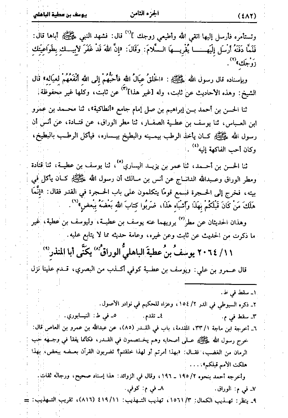 2064- يوسف بْن عطية الباهلي الوراق، يُكَنَّى أَبَا المنذر.