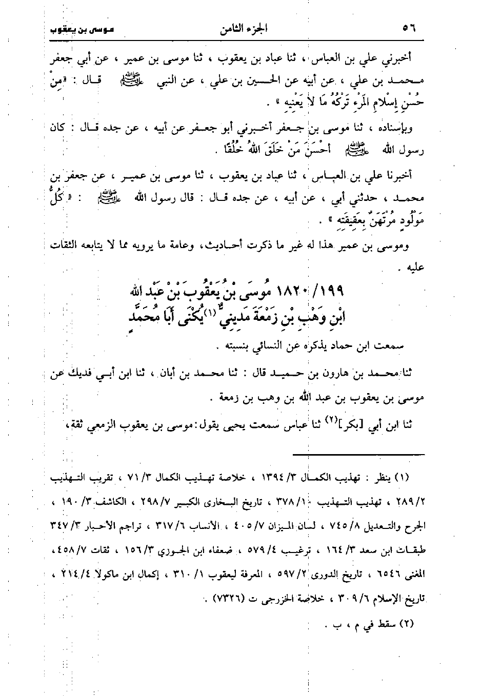 1820- موسى بْن يَعْقُوب بْن عَبد اللَّه بْن وَهْب بْن زمعة مديني، يُكَنَّى أَبَا مُحَمد.